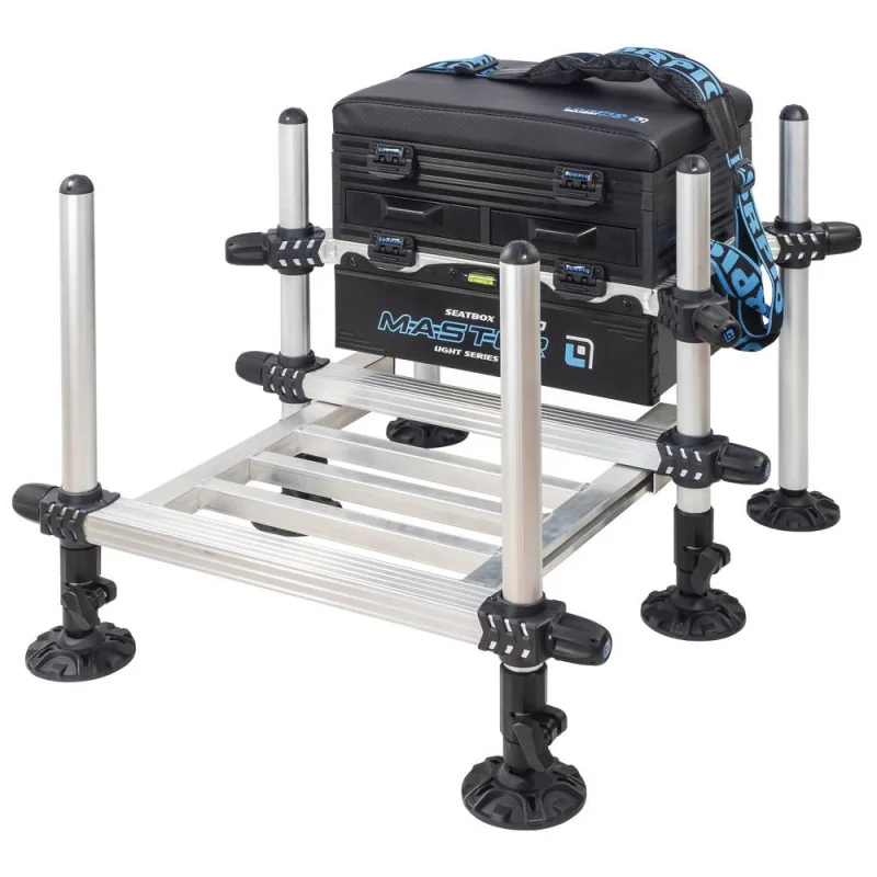Ultra lekki, stabilny kosz wędkarski na nogach 36mm. Wszystkie nogi regulowane a przednie i środkowe teleskopowe. Regulowana wysokość siedziska względem platformy, pozwala dopasować kosz do wzrostu wędkarza. Pojemne kasety oraz dwie przednie szuflady pomieszczą drobne i większe akcesoria. Mała waga kosza oraz wygodny, regulowany, szeroki pas naramienny gwarantuje wygodny transport. Możliwość stabilnego ustawienia nawet w trudnym terenie. Opcjonalne akcesoria Master, montowane na nogi, pozwalają na komfortowe wędkowanie w każdych warunkach.