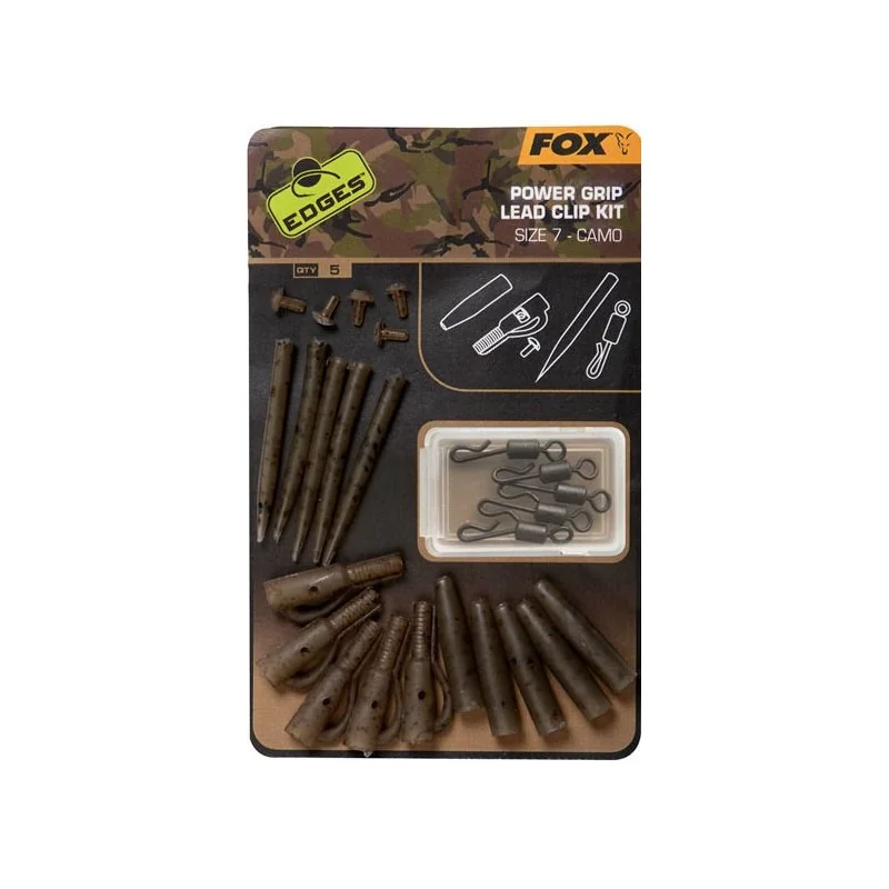 Zestaw Power Grip Camo EDGES zawiera wszystko, co jest potrzebne do stworzenia konfiguracji klipsa ołowianego. Zestawy Power Grip są zaprojektowane tak, aby utrzymać ciężarek, chyba że ryba zostanie złapana.