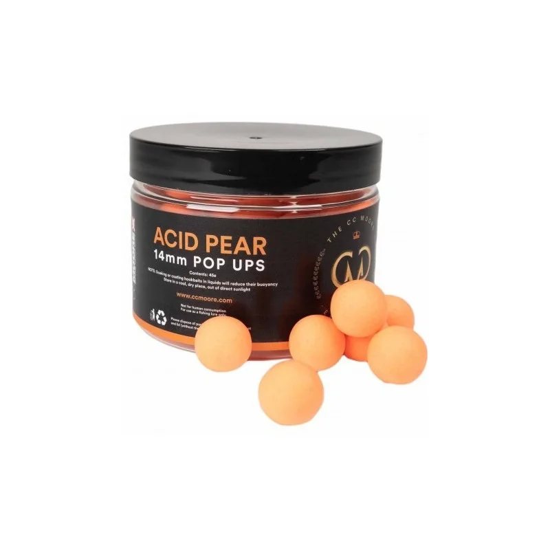 Wysokiej jakości, jasnopomarańczowe pop-upy o dużej pływalności wykonane z silnej, przypominającej gruszkę mieszanki smakowej. Dostępne w standardowych rozmiarach 12 mm, 14 mm i 18 mm, plus dodatkowo wyporność + 13-14 mm. Są bardzo skuteczne przez cały rok i mogą być używane z przyponami ronnie rig, bądź chod rig, w workach PVA, samodzielnie lub jako „topper” do innych przynęt.