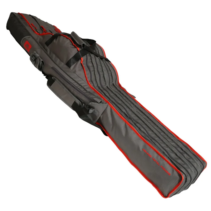 Pokrowiec na wędki - 4 komorowy to praktyczny i pojemny pokrowiec wędkarski wyposażony w 3-4 duże komory, które bez problemu pomieszczą złożone wraz z kołowrotkami zestawy wędzisk. Dodatkowe boczne kieszenie pomogą w wygodnym transporcie np. parasola czy podpórek.
