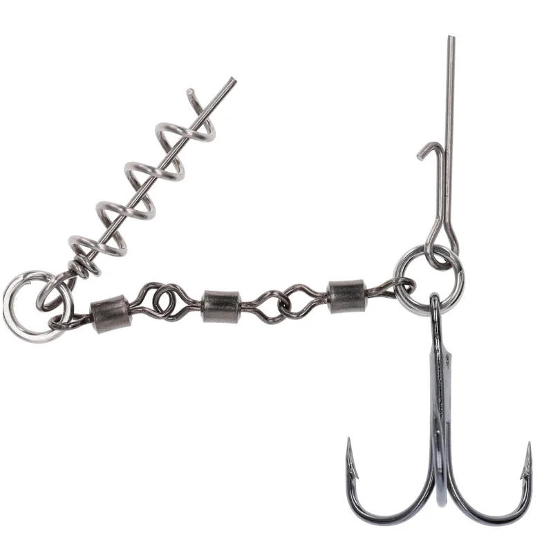 Dozbrojka na krętlikach Jaws Evo Stinger to pojedyncza dozbrojka z wkrętem oraz pinem. Zastosowanie kilku krętlików pozwoliło uzyskać bardzo mocne połączenie, które eliminuje możliwość wytworzenia zjawiska dźwigni podczas holu, dodatkowo stabilizując gumę.