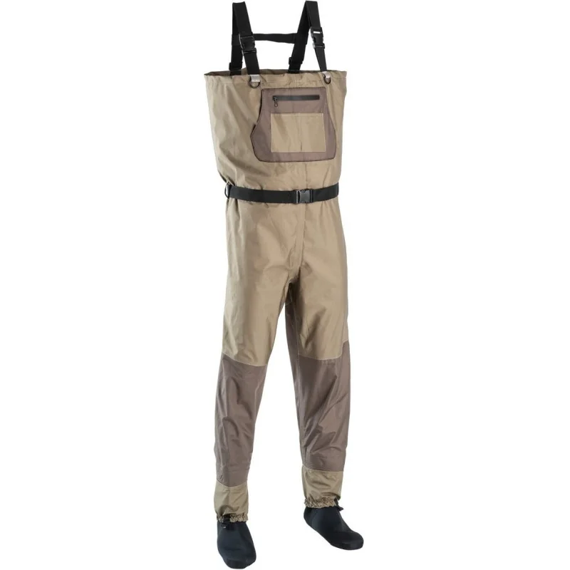 Spodnie z oddychającego materiału i neoprenową skarpetą to bardzo lekkie, wygodne spodnie do piersi wykonane z wysokiej klasy materiału z membraną oddychającą, pozwalającą na odprowadzenie pary wodnej. Specjalne właściwości tego materiału powodują, że aktywnie poruszający się nad wodą wędkarz poci się zdecydowanie mniej niż w przypadku spodni wykonanych ze standardowego tworzywa. Swoboda ruchów jest nieporównywalnie lepsza.