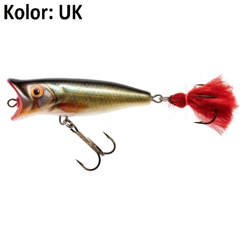 Jaxon Holo Select Popper New VJ-PN. Klasyczny wobler przeznaczony do powierzchniowego łowienia. Idealnie sprawdzi się na płytkich łowiskach silnie porośniętych roślinnością. Prowadzony skokami powoduje charakterystyczne pluśnięcia wabiące drapieżniki. Grzechotki w korpusie podnoszą atrakcyjność przynęty. Dostępne długości 5cm, 7cm i 9cm sprawdzą się przy połowie szczupaków oraz okoni.