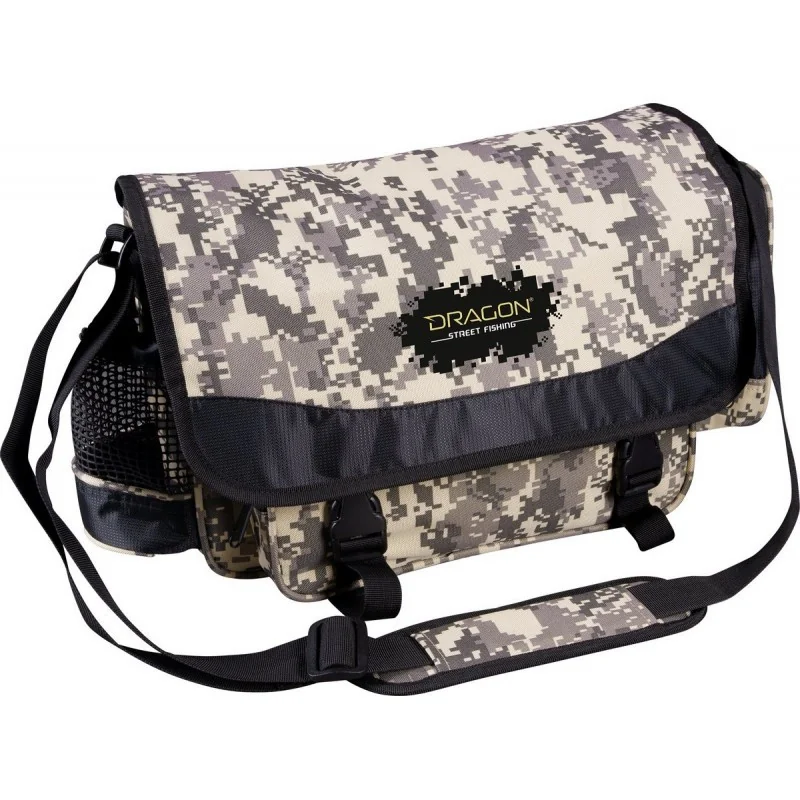 Chlebak z mocowaniem biodrowym to torba spinningowa z zapięciami na zatrzaski. Komfortowy system przechowywania i transportu akcesoriów wędkarskich. Wykonany z wytrzymałego materiału w modnej wersji camo-pixel. Przednia, płaska kieszeń, na bokach siatkowa otwarta kieszeń na napój i siatkowa kieszeń zamknięta. Pas umożliwiający zapięcie torby na biodrach.