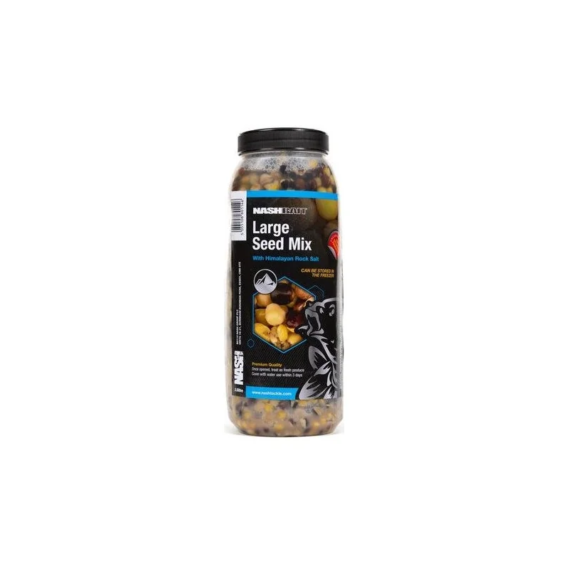Large Seed Mix to ponadczasowa kombinacja, która zapobiega przejadaniu się karpi poprzez zastosowanie ziaren, które jednocześnie mogą posłużyć jako przynęta haczykowa idealnie wtapiająca się z zanętę.