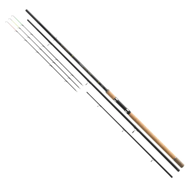 Dzięki tym wędziskom każde branie pewnie nawet z dużego dystansu i w silnym nurcie. 3 zamienne szczytówki są perfekcyjnie dopasowane do akcji wędziska. Wyposażone w przelotki SiC i długi korkowy gryf do dalekich wyrzutów.