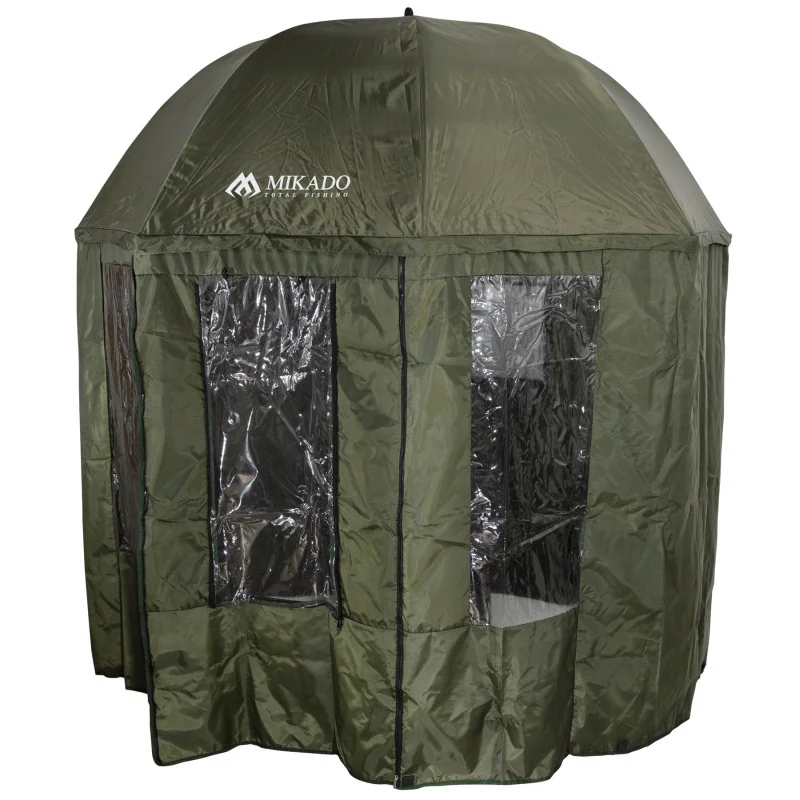 Parasol z boczną osłoną 360 - Moskitiery 2,5 m to forma ochrony przed niekorzystnymi warunkami atmosferycznymi. Model ze ścianami bocznymi, systemem okien i moskitierą. Wykonany z mocnego wodoszczelnego materiału z podklejanymi szwami. Wnętrze przestronne dla wędkarzy, czy na ekwipunek.