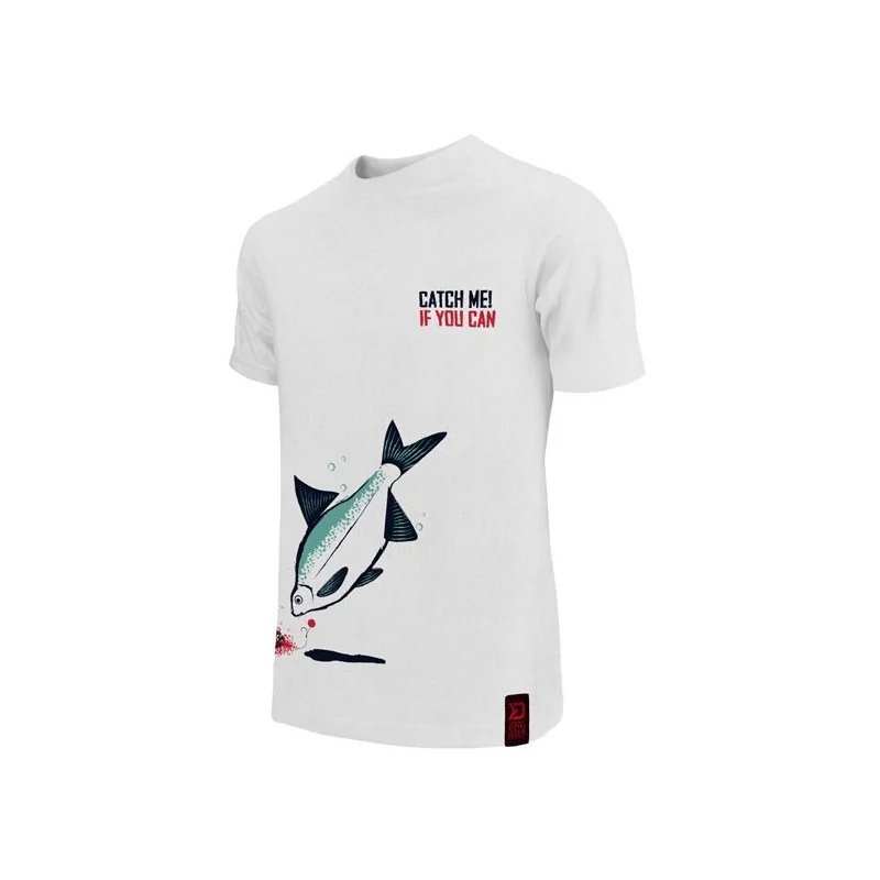 Koszulka Catch me! Leszcz to oferta nowoczesnych koszulek z wizerunkiem ryby. Model dla wędkarzy zarówno na łowisko jak i do codziennych stylizacji. CATCH ME IF YOU CAN to świetny design dla profesjonalisty. Koszulka Catch me! Leszcz zaprojektowana jest w białym kolorze z wizerunkiem leszcza właśnie podpływającego do przynęty, czyli momentu, na który czekają wszyscy miłośnicy łowienia tych ryb.