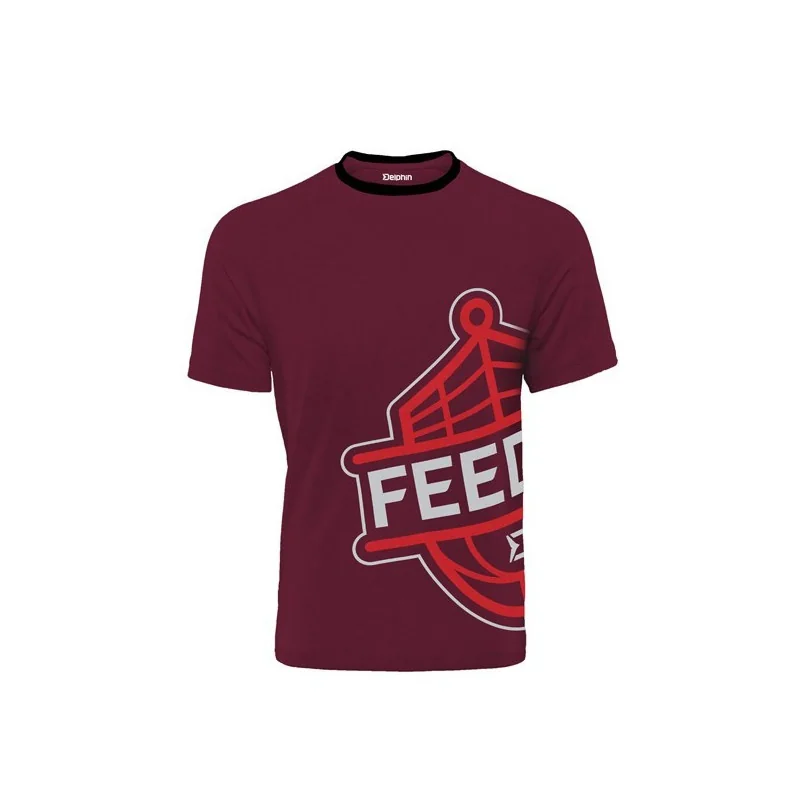 Koszulka Feeder Delphin FEEDER to stylowa odzież dla fanów wędkarstwa. Model w kolorze winnej czerwieni, który świetnie komponuje się z serią feeder ATOMA. Z boku koszulki duża aplikacja feeder, czyli połączenie koszyczka klasycznego i method feeder wraz z napisem FEEDER. Doskonały projekt zwolenników tej formy łowienia.