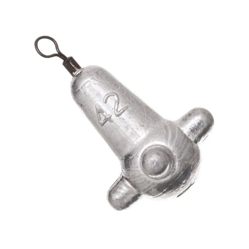 Dzięki specjalnym wypustkom, wędkarz ciągnąc ciężarek doskonale wyczuwa charakterystykę dna, co jest nie mniej ważne niż prawidłowe określenie głębokości łowienia. Ciężarek wyposażony jest w krętlik.