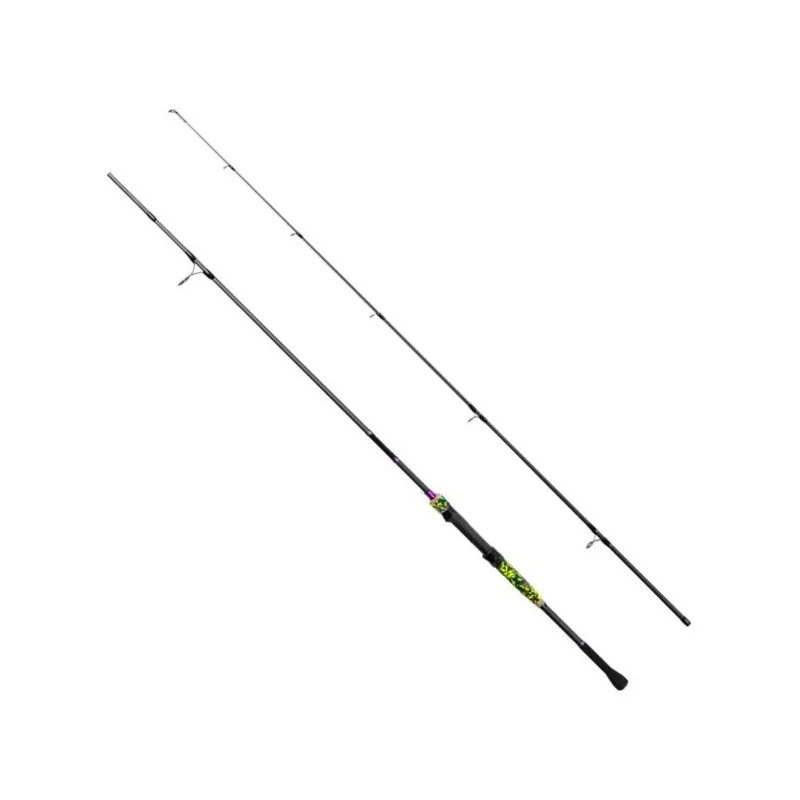 Wędka Hypnoosa to pręt dla wędkarzy, którym daleko od stereotypów. Na pierwszy rzut oka zauważymy uchwyt, który jest wykonany z kolorowego kamuflażu przy użyciu kolorów jasnozielonego, brązowego i zielonego. Powyżej tego „hipnotyzującego” uchwytu znajdziemy subtelne szczegóły korka, a w dolnej trzeciej części wędki znajdziemy fioletowe, gwintowane dekoracje. Matowy szary blank i czarne przelotki sprawiają, że wędka jest eleganckim towarzyszem wody, a nowocześnie skomponowany dolnik przyciąga wzrok. Półparaboliczna akcja na sztywniejszym półfabrykacie sprawia, że model ten jest bardzo skuteczną bronią na drapieżniki, które można wygodnie podnieść na długości wędki, a nawet pokonać duże szczupaki lub mniejsze sumy.