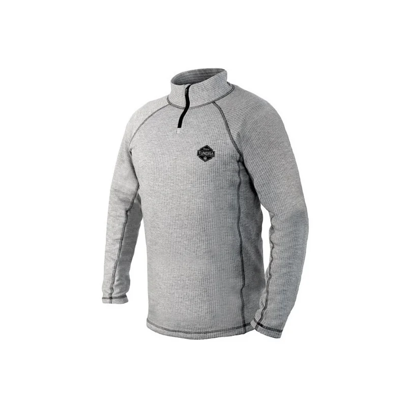 Bielizna termiczna TUNDRA - cześć górna to termoaktywna odzież, która reguluje temperaturę poprzez odprowadzenie potu ze skóry na zewnątrz.. Połączenie 60% poliestru i 40% bawełny tworzy przyjemny i wygodny w dotyku elastyczny materiał, który zapewnia maksymalny komfort nawet podczas mroźnych zimowych dni. Dostępny zakres rozmiarów S-XXXL udowadnia, że pomyśleliśmy o każdym. Neutralny szary kolor z kontrastującymi czarnymi przeszyciami doskonale uosabia bardzo różnorodne zastosowanie tej bielizny termicznej, niezależnie od tego, czy łowisz ryby, polujesz, czy uprawiasz sporty zimowe.