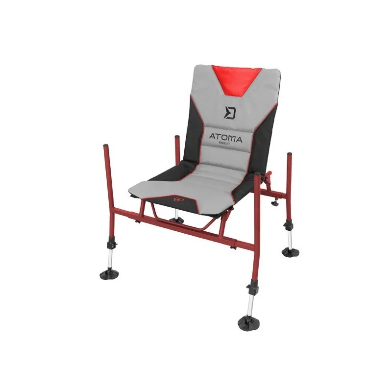 Krzesło feederowe ATOMA RaceBase RaceBase to wysokiej jakości krzesło feederowe, które przyciągnie uwagę wymagających miłośników tej techniki wędkarskiej. Podstawą krzesła jest wyjątkowo mocna żelazna konstrukcja , o bordowym wykończeniu, charakterystyczna dla produktów z serii ATOMA. Dzięki swojej konstrukcji i zastosowanemu materiałowi krzesło to nie będzie miało problemu nawet z cięższymi wagowo wędkarzami.
