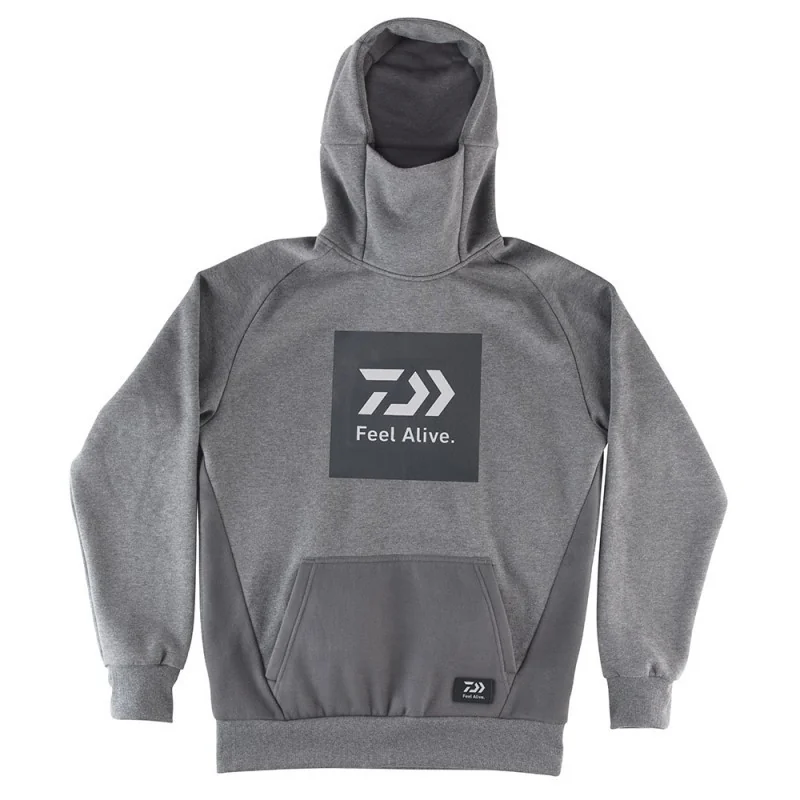 Bluza z kapturem D-VEC Szara to klasyczny model bluzy sportowej dedykowanej miłośnikom marki DAIWA. Model kangur w odcieniach szarości z aplikacją D-VEC FEEL ALIVE na piersi i w postaci metki/naszywki na kieszeni. Charakterystyczną cechą tego projektu jest wysoki kołnierz. Zabudowany kaptur to lepsze zabezpieczenie przed chłodem czy wiatrem.