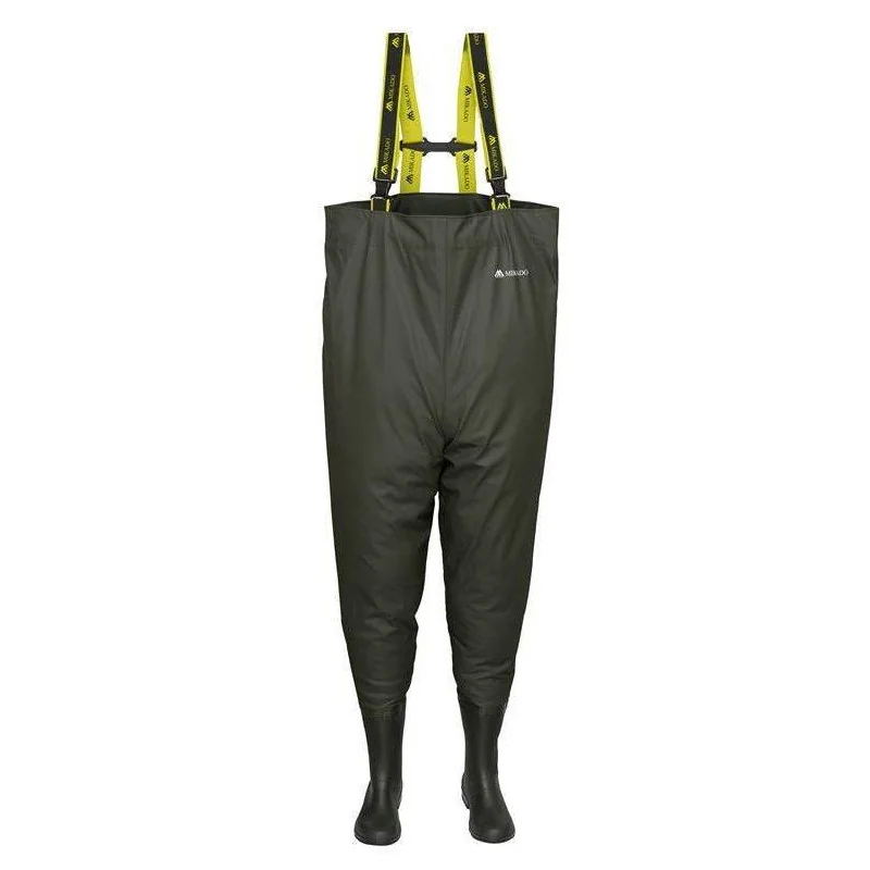 Spodniobuty to odzież uzupełniająca i forma zabezpieczenia wędkarza przed trudnym terenem czy złą pogodą. Stworzone z ttrwałego materiału poliestrowego o właściwościach wiatroszczelnych. Pełen komfort użytkowania jest możliwy dzięki funkcji wodoodporności, za którą odpowiada technologia uszczelniania szwów. Część spodni w wersji z wysokim stanem osadzone na szelkach z możliwością regulacji. Kalosze posiadają podeszwę z bieżnikiem dla lepszej przyczepności i bezpiecznego poruszania się.