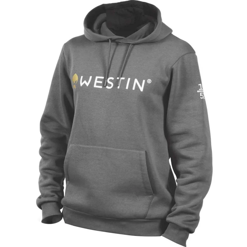 Bluza z kapturem Original to klasyczna odzież sportowa z kapturem i centralną kieszenią. Zapewnia wygodę dzięki tkaninie z bawełny i poliestru w stosunku 65/35% z wyjątkowo miękkim, szczotkowanym wnętrzem odpowiadającym za komfort i ciepło. Logo marki Westin zdobi przód i tył bluzy. Odpowiednia na łowisko jak i do użytku codziennego.