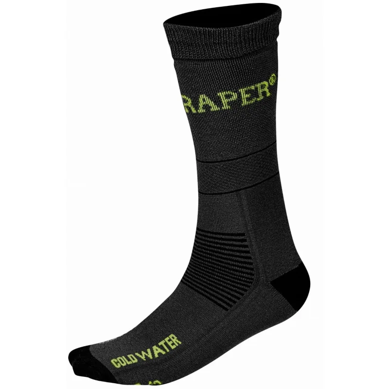 Skarpety Cold Water Szary to termoaktywne skarpety doskonałe na trudne warunki. Włókna wełny merynos utrzymują ciepło i nie powodują podrażnień. Poliamid, dzięki specjalnej strukturze włókien, dobrze izoluje termicznie oraz wydajnie odprowadza wilgoć z powierzchni ciała. Dodatek elastanu gwarantuje pewne ułożenie i delikatne przyleganie skarpety, bez nadmiernego ucisku. Strefowa konstrukcja skarpety utrzymuje ją we właściwym miejscu, a wzmocnienia na pięcie i palcach zapewniają długotrwałe użytkowanie. W serii znalazły się skarpety Cold Water średniej gramatury, grubsze Extreme oraz najgrubsze Alaska. Ofertę uzupełniają skarpety Active, które przeznaczone są do użycia w ciepłych porach roku.
