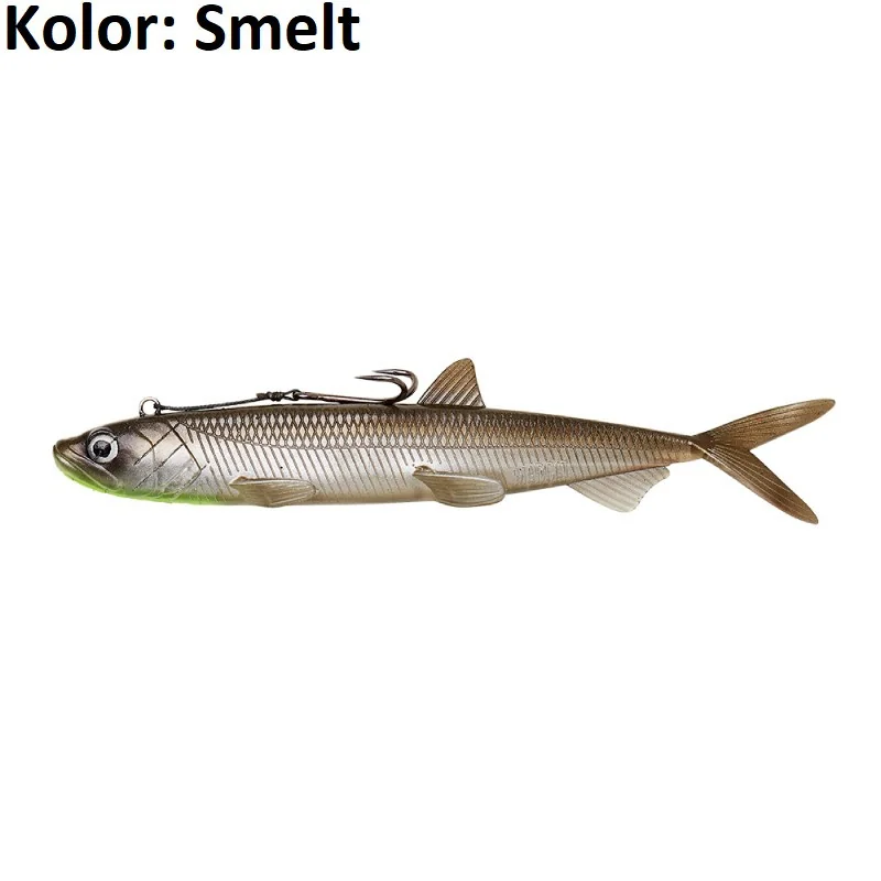 Guma Pelagic Cat Lure 21 cm to model super realistycznej i niesamowicie szczegółowej przynęty. Posiada ołowiane obciążenie zlokalizowane w główce, tak aby nie płoszyć ostrożnych sumów. Wabik opada szybko i prosto jak strzała, a także zawisa poziomo w strefie brania. Super mocny podwójny hak 6X jest utrzymywany w miejscu za pomocą wbudowanego, małego magnesu.Sumy i czasami sandacze atakują tę przynętę tak mocno i połykają tak głęboko, że wyczepienie może być trudne. Zastosowany tu podwójny hak nie wbija się w korpus przynęty, dzięki czemu odhaczanie jest szybsze i bardziej bezpieczne dla ryb. Przynęta pokryta jest również atraktorem o aromacie stynki, który przyciąga sumy z dużych odległości.