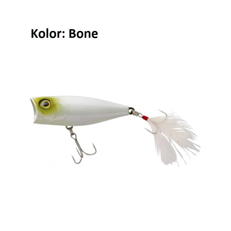 Wobler SK-POP to popper zwarty, dobrze wyważony, który może być zarzucony z precyzją samonaprowadzającej rakiety! Wszystko to dzięki właściwemu umiejscowieniu wewnętrznego obciążenia. Jest łatwy doprowadzenia, dobrze rozpryskuje wodę imitując żerujące małe rybki, co prowokuje drapieżniki nawet do ataku z dużej głębokości. Dzieje się tak dzięki innowacjom zastosowanym przez Seiji Kato, który dodał dwie małe wnęki w pustym, wklęsłym pyszczku poppera.