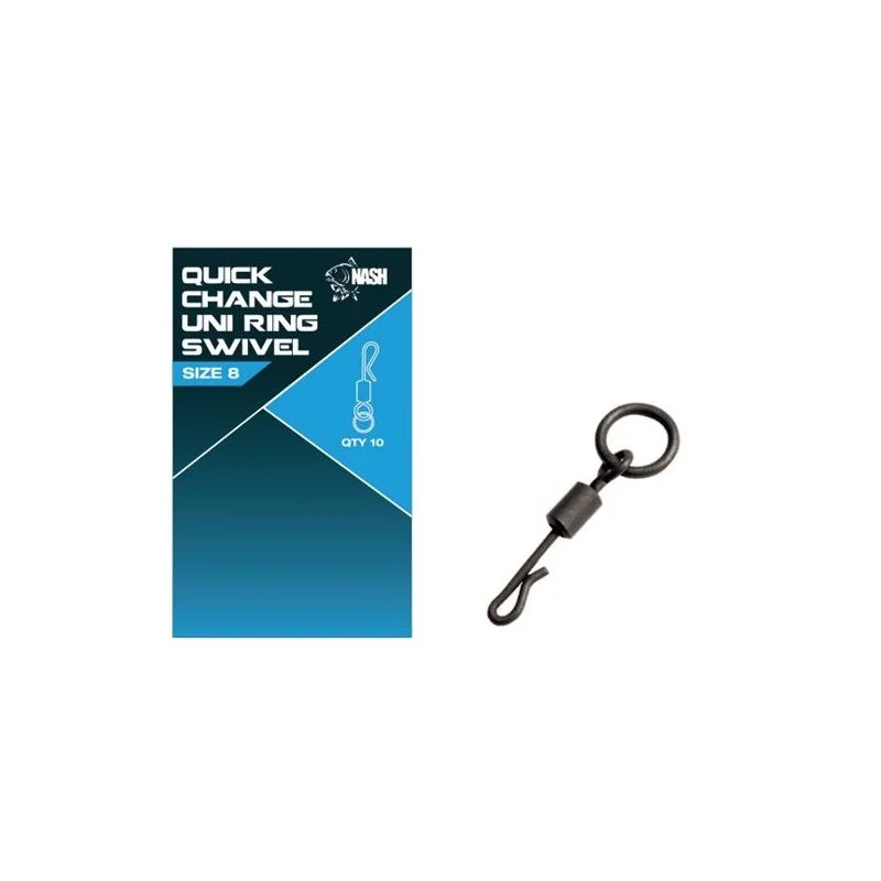 Krętlik Quick Change Ring Swivel Size 8 to bardzo mocny krętlik z kółkiem oraz szybkozłączką. Niezbędny przy zestawie Ronnie Rig i pomocny przy zestawach helikopterowych.