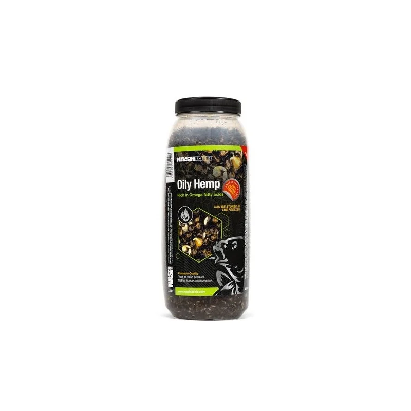 Ziarna w zalewie - Oily Hemp 2,5 l to najwyższej jakości, duże nasiona francuskiej konopi wzmocnione olejem zawierającym niezbędne kwasy tłuszczowe Omega 3 i 6. Oily Hemp to idealny dodatek do spod mixów jak i zanęt dennych. Działa w całej przestrzeni toni wodnej oraz pozostawia wyraźnie ślady na powierzchni co łatwo pozwala namierzyć żerujące w naszym łowisku karpie.