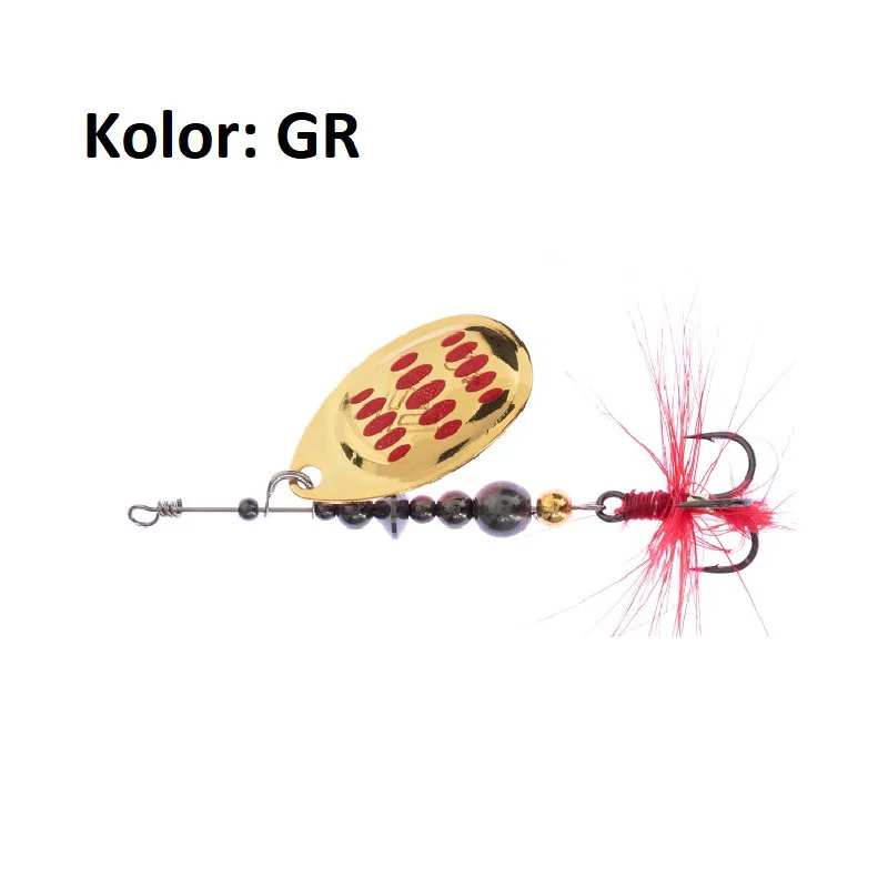 Błystka obrotowa - Hypnotic to linia niezawodnych błystek obrotowych wykonanych z najwyższej klasy komponentów. Szeroka gama kolorów i rozmiarów pozwala poławiać nimi wszystkie słodkowodne ryby drapieżne. Czerwony chwost na kotwicy dodatkowo podnosi atrakcyjność tej przynęty.