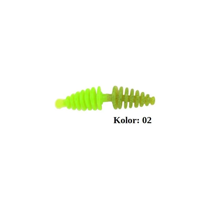 Guma Wacka firmy Trout Master jest imitacją larwy wykonaną z elastycznej gumy. Unikalna konstrukcja pozwala na zamocowanie haczyka na środku przynęty, co zapewnia uwodzicielską akcję. Wykonane w atrakcyjnych kolorach z mocnym czosnkowym aromatem. Pływające robaki można również używać do jigheadów lub innych lekkich technik spinningowych. Idealna przynęta na pstrągi, ale koniecznie też spróbuj jej na okonie lub bolenie!