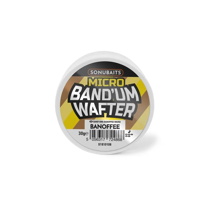 Pellet haczykowy Micro Band'Um Wafter opracowany z myślą o sytuacjach, gdy szukasz ryby, która wejdzie do twojego kołka i zużyje cały stos przynęty, łącznie z paszą i haczykiem. Wędkarze Sonubaits, w tym Des Shipp i Jamie Hughes, są przekonani, że mała niepozorna przynęta może pomóc zaciąć więcej ryb na tę metodę.
