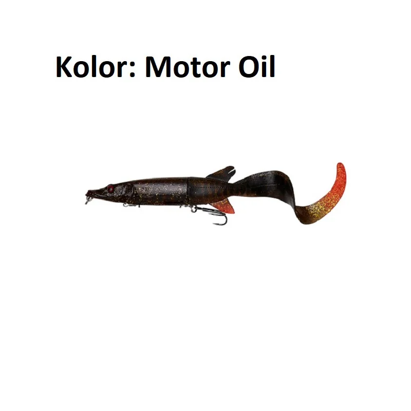 Ogonem Curl można łowić bardzo wolno, pozostawiając przednią część przynęty bardzo stabilną, a ogon o wabiącej i prowokującej akcji. Zabójcza kombinacja na ostrożnego i często ostrożnego dużego szczupaka! Kiedy ogonek jest przykręcony ogonem w dół – „siła skierowana w górę” na ogonie – popchnie główkę przynęty w dół – tak, że schodzi pod powierzchnię mniej więcej na taką samą głębokość do samego końca – Obróć ogon do góry , a „siła docisku” na ogonie – zmusi głowę do góry – więc węgorz wypłynie na powierzchnię i przebiegnie tuż pod powierzchnią, tworząc efekt superbudzenia! Innowacyjny zestaw zwalniający umożliwia odłączenie tylnego haka od korpusu przynęty, gdy ryba jest zahaczona.
