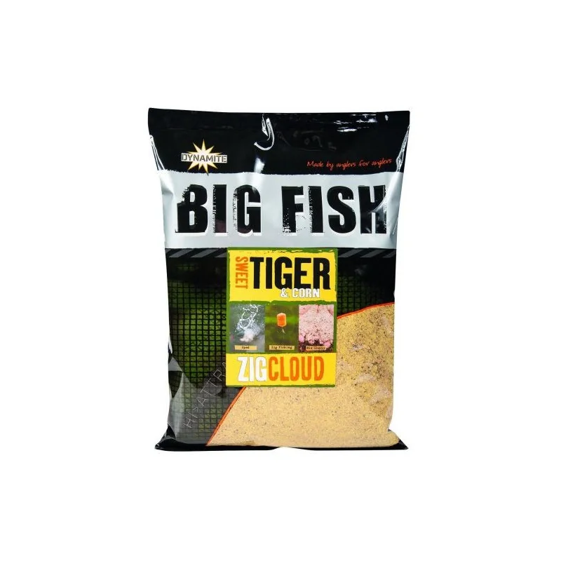 Zanęta Sweet Tiger & Corn Zig Cloud - Big Fish tworzy w wodzie słodko-kremową mgiełkę, która przyciąga ryby z dużego obszaru. Różnej wielkości cząsteczki oznaczają, że chmura osiada na różnych poziomach w całym słupie wody, przyciągając ryby z różnych głębokości wody.