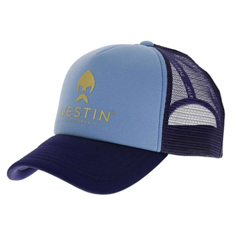 Czapka z daszkiem Austin Trucker to letnie nakrycie głowy w odcieniach niebieskiego z przewiewnym panelem z siatki. Drukowane logo marki Westin zdobi front czapki. Austin Trucker to doskonałe uzupełnienie wizerunku wędkarza.