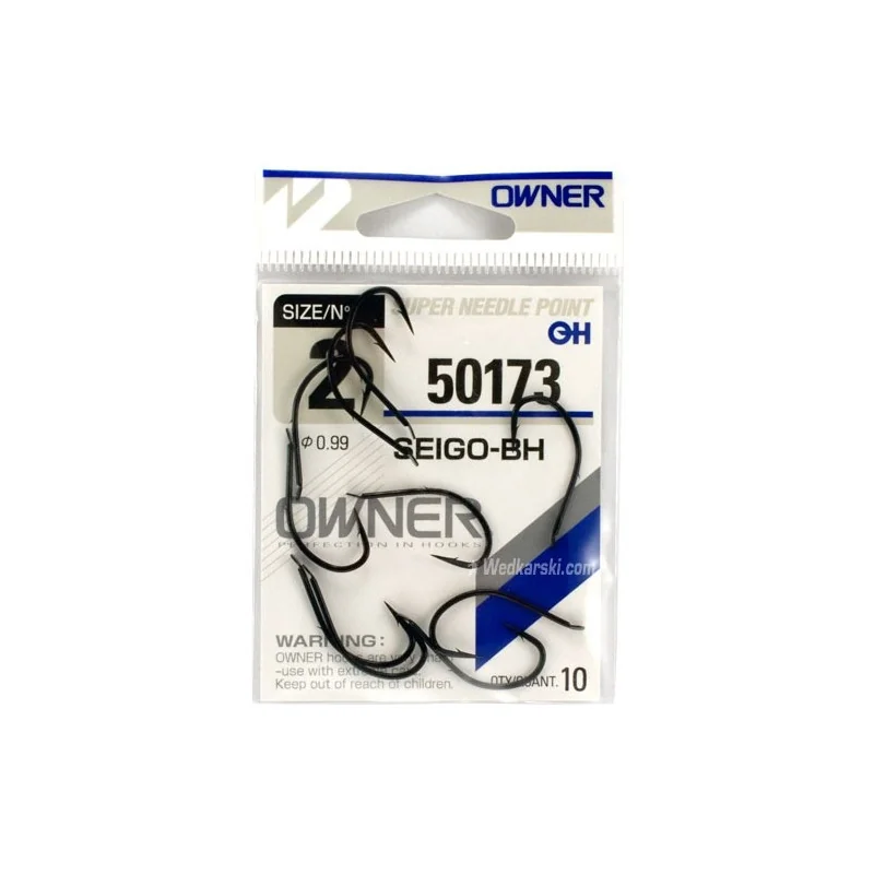 Wydłużone haczyki kute z łopatką i pojedynczym zadziorem na trzonku. Wykonane ze stali Hi-Carbon. Superostrze Owner Cut.