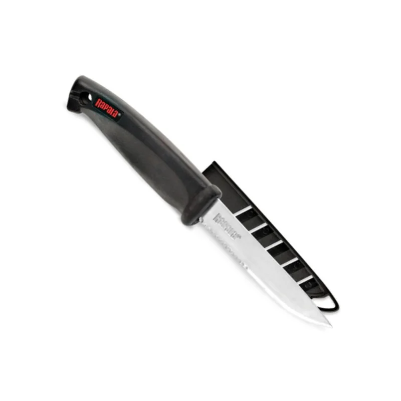 Nóż wędkarski RUK4 Fisherman's utility Knife to wszechstronny model z 4-calowym ostrzem ze stali nierdzewnej z ząbkowanym wykończeniem - przecina prawie wszystko. Wyposażony w klips blokujący i otwartą pochwę. Formowana rękojeść „comfort grip” z osłoną palców dla bezpieczeństwa.