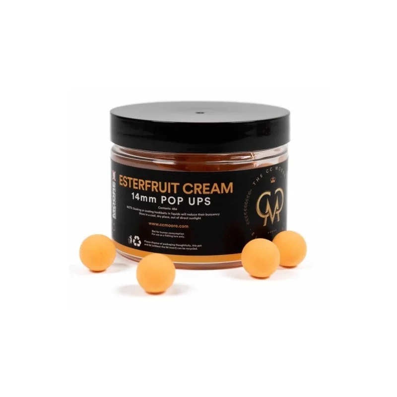 Kulki Elite Esterfruit Cream Pop Ups to wysokiej jakości pływające, jaskrawe pop-upy o owocowo-śmitankowym zapachu. Dostępne w standardowych rozmiarach 12 mm, 14 mm i 18 mm oraz w rozmiarze o zwiększonej wyporności + 13-14 mm, są bardzo skuteczne przez cały rok i mogą być używane na przyponach PVA, samodzielnie lub jako „nakładka” na inne przynęty.