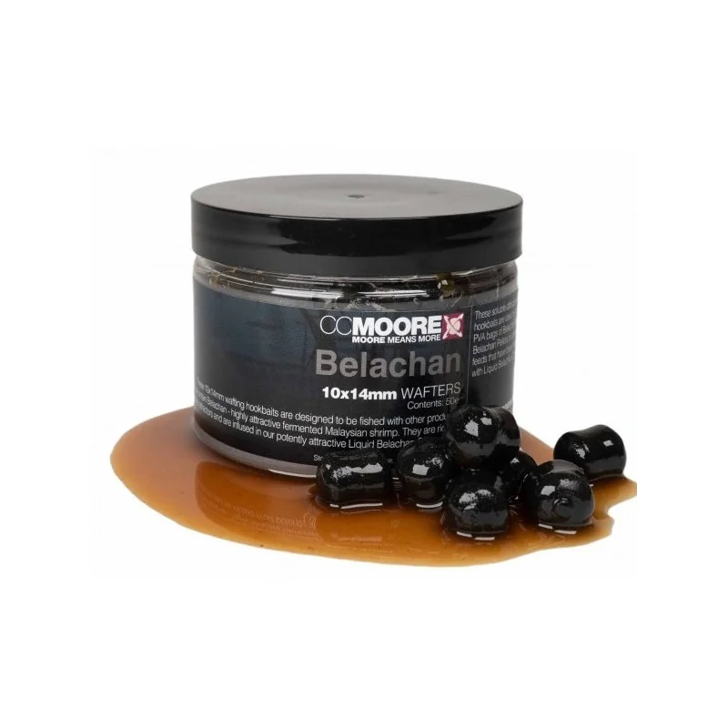 Ciemnoszare, trwałe przynęty haczykowe 10x14 mm oblane w bardzo atrakcyjnym, słonym płynie Belachan Compound. Dostarczane w pojemnikach po 50 sztuk, te całoroczne przynęty są doskonałe, gdy są używane z workami PVA i pałeczkami Belachan Pellets lub Bag Mix.