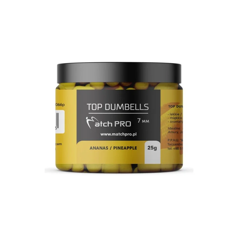 Przynęta Top Dumbells Sinking to seria najwyższej jakości przynęt o kształcie wałka (dumbells) w rozmiarze 7mm. Długie i intensywne testy tych przynęt pozwoliły dopracować ich skład i właściwości tak aby były bardzo skuteczne w każdych warunkach. To co wyróżnia Matchpro Top Dumbells to idealna miękkość, dzięki której ryby pewnie ją pobierają. Wyjątkowa lekkość przynęty zapewnia bardzo naturalne zachowanie się w wodzie co niezwykle podnosi skuteczność łowienia. Top Matchpro Dumbells są bardzo aromatyczne, oddając przez długi czas równomiernie aromat w wodzie co przekłada się na dużą ilość brań. Różnorodność smaków i kolorów pozwala dopasować się każdemu wędkarzowi do aktualnych warunków panujących na łowisku.