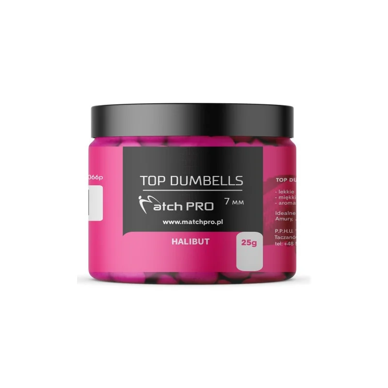 Przynęta Top Dumbells Sinking to seria najwyższej jakości przynęt o kształcie wałka (dumbells) w rozmiarze 7mm. Długie i intensywne testy tych przynęt pozwoliły dopracować ich skład i właściwości tak aby były bardzo skuteczne w każdych warunkach. To co wyróżnia Matchpro Top Dumbells to idealna miękkość, dzięki której ryby pewnie ją pobierają. Wyjątkowa lekkość przynęty zapewnia bardzo naturalne zachowanie się w wodzie co niezwykle podnosi skuteczność łowienia. Top Matchpro Dumbells są bardzo aromatyczne, oddając przez długi czas równomiernie aromat w wodzie co przekłada się na dużą ilość brań. Różnorodność smaków i kolorów pozwala dopasować się każdemu wędkarzowi do aktualnych warunków panujących na łowisku.
