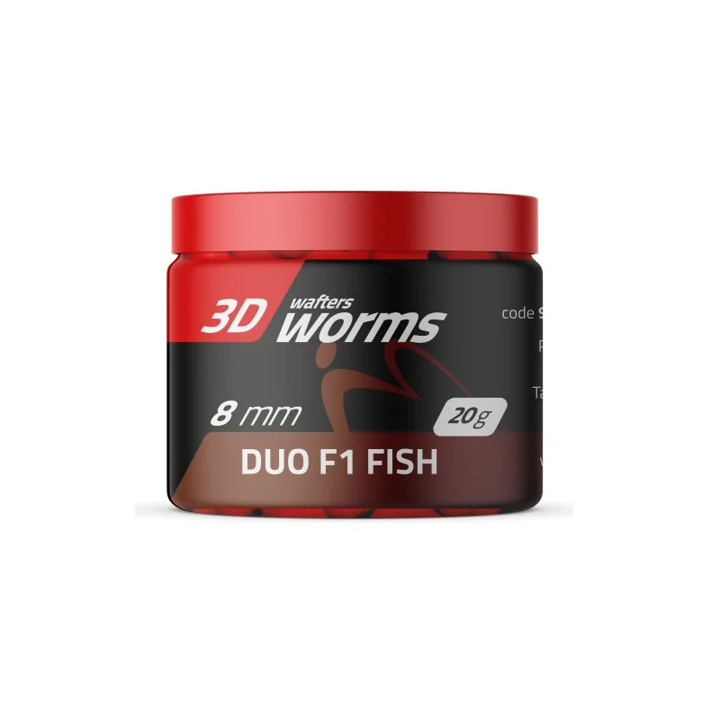 Przynęta 3D Top Worms Wafters to najnowszej generacji przynęty wędkarskie o fantastycznych właściwościach! Idealny balans w wodzie powoduje, że ryby nie czują oporu podczas pobierania przynęty. Dzięki ciekawemu i niestandardowemu kształtowi, mamy znacznie większe szanse na złowienie bardzo dużej ryby. Intensywny i długo utrzymujący się aromat sprawia, że WOMRS 3d jest skuteczny bardzo długo w wodzie! Ta przynęta była sekretem kilku czołowych zawodników method feeder ! Teraz dostępna dla każdego !