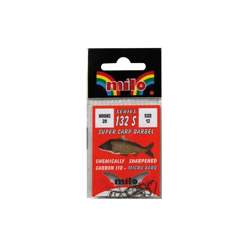 Haczyki 132S Carbone 110 ostrzone chemicznie, wyposażone w mikrozadzior. Haki te kształtem przypominają model P132, różnią się jedynie grubością druta, jest to tzw. wersja STRONG haczyków Milo P132.