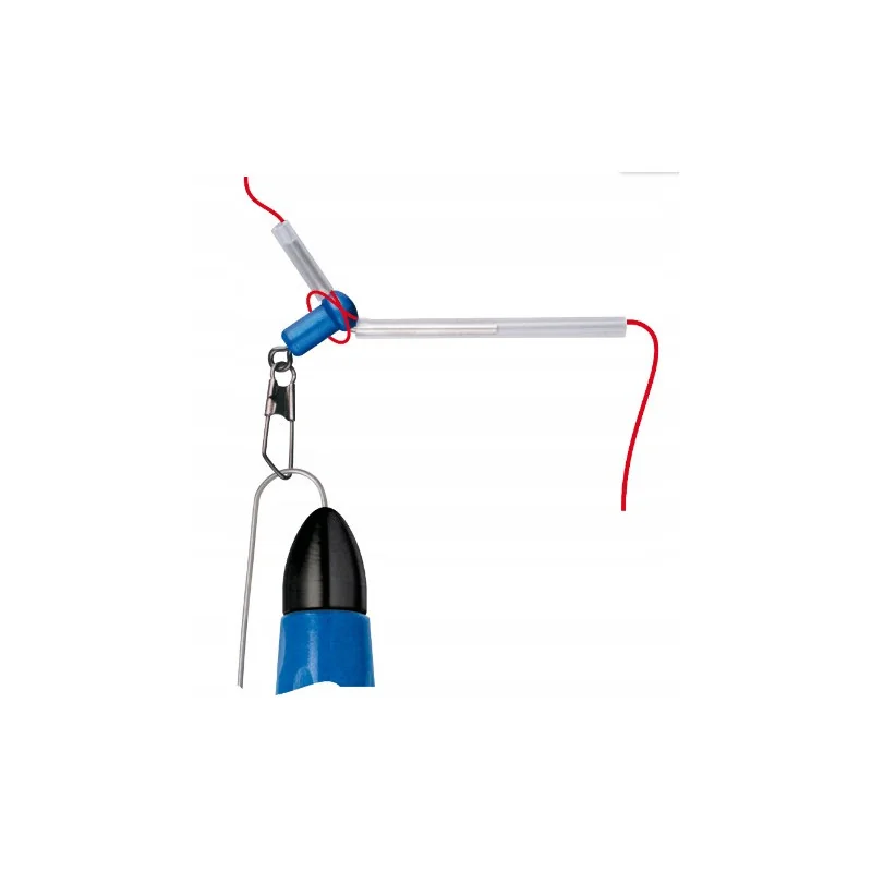 Łącznik do spławika Ugięty 2006 to system którego jedno ramie jest dłuższe i co powoduje odpowiednie pozycjonowanie w wodzie. Dłuższe, cięższe ramie, do którego przymocowany jest ołów i haczyk przechyla się w dół, dzięki czemu zmniejsza się możliwość zaplątania zestawu.
