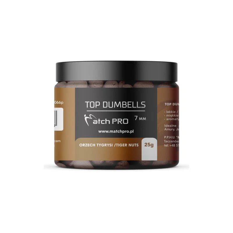 Przynęta Top Dumbells Sinking to seria najwyższej jakości przynęt o kształcie wałka (dumbells) w rozmiarze 7mm. Długie i intensywne testy tych przynęt pozwoliły dopracować ich skład i właściwości tak aby były bardzo skuteczne w każdych warunkach. To co wyróżnia Matchpro Top Dumbells to idealna miękkość, dzięki której ryby pewnie ją pobierają. Wyjątkowa lekkość przynęty zapewnia bardzo naturalne zachowanie się w wodzie co niezwykle podnosi skuteczność łowienia. Top Matchpro Dumbells są bardzo aromatyczne, oddając przez długi czas równomiernie aromat w wodzie co przekłada się na dużą ilość brań. Różnorodność smaków i kolorów pozwala dopasować się każdemu wędkarzowi do aktualnych warunków panujących na łowisku.