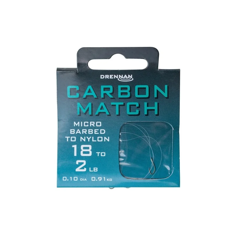 Gotowe przypony CARBON MATCH w praktycznym opakowaniu. Haczyk pokryty brązem, mikrozadzior, ostro zagięte kolanko, średniej długości trzonek.