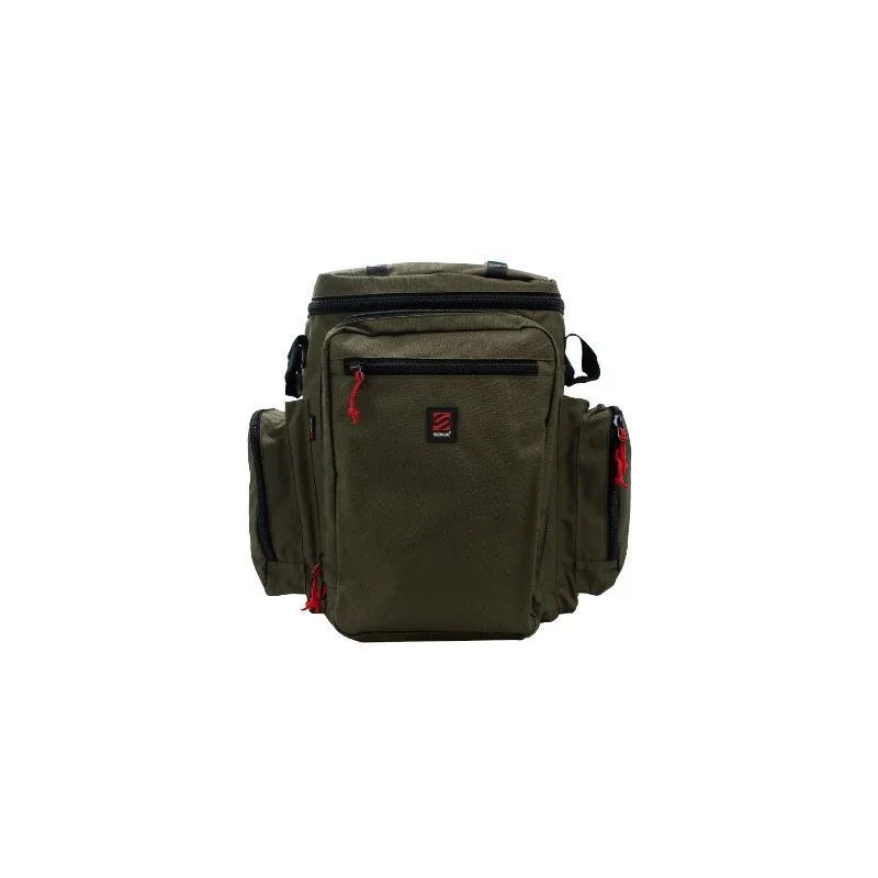 Plecak to niezwykle wszechstronny plecak wędkarski. Wyposażony w powiększone przednie i boczne kieszenie zapinane na zamek. Wyściełana uprząż z paskiem mostka dla wygody. Kieszenie na podpórki z każdej strony z elastycznymi uchwytami. Wewnętrzna kieszeń zapinana na suwak. Posiada zewnętrzne paski na akcesoria i uchwyty. Wykonany z wodoodpornego materiału bazowego HD oraz wytrzymałego materiału 600D z wykorzystaniem zamków błyskawicznych i ściągaczy.