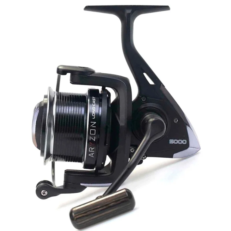 Aryzon Long Cast to solidny kołowrotek feederowy o dużej pojemności do dalekich rzutów. Oscylacja wału ślimakowego zapewnia idealne układanie żyłki, a pływająca osłona żyłki rotora pomaga zapobiegać splątaniom. Zaskakująco lekki jak na swój rozmiar ten kołowrotek z łożyskiem kulkowym 6+1 nawija blisko 1 m żyłki na jeden obrót. Dwa klipsy do żyłki o dużej sile uderzenia pomagają w dokładności, a system szybkiego przeciągania momentu obrotowego zapewnia kontrolę nad dużą rybą. Aryzon Long Cast bardzo dobrze łączy się z wędkami Aryzon Continental i Starkx Big River lub Method.