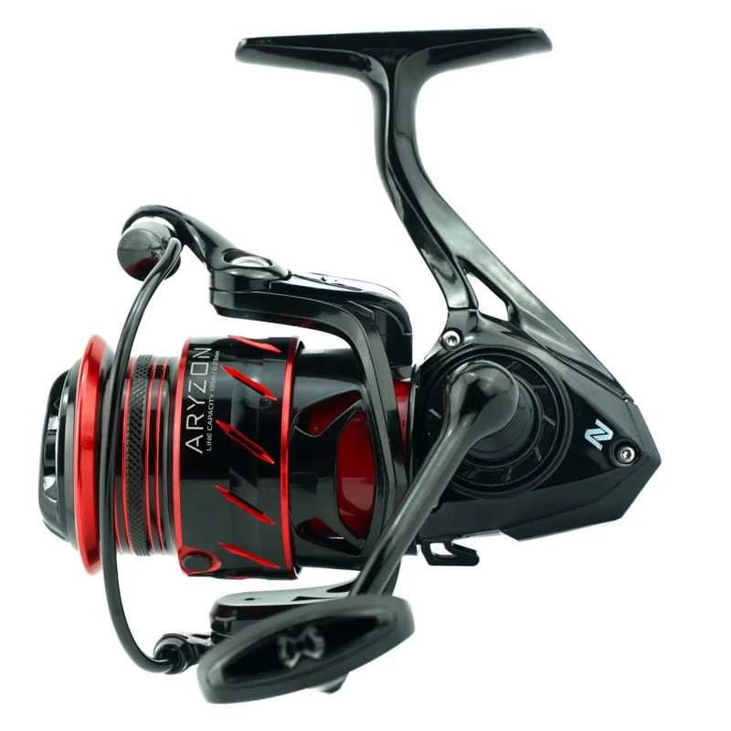 Kołowrotek Aryzon w błyszczącej czerni z czerwonymi akcentami jest to oszałamiająco wyglądający kołowrotek. A dzięki systemowi łożysk kulkowych 6+1 również dobrze się sprawuje. Oferuje jedwabiście gładkie zwijanie i naprawdę dobre układanie żyłki zarówno w przypadku żyłki, jak i plecionki. Posiada precyzyjnie regulowany, wielotarczowy hamulec na szpuli. Idealny w połączeniu z komercyjnymi wędkami Aryzon.