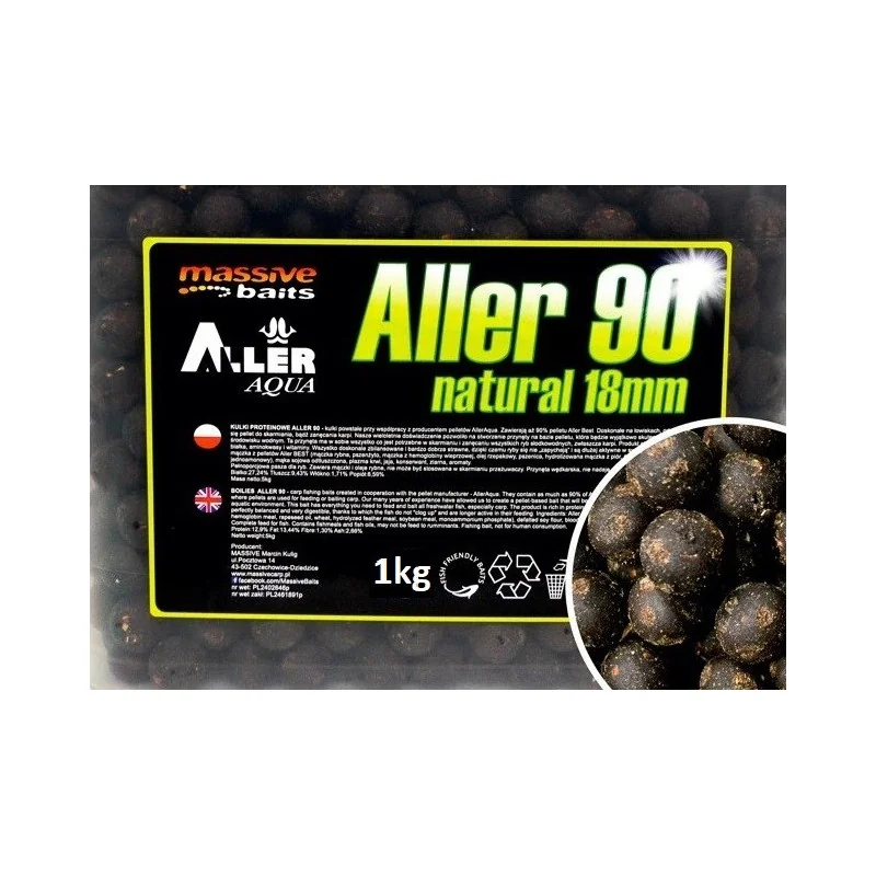 Kulki proteinowe Massive Baits Aller 90 Natural 1 kg / Luz / Folia 18