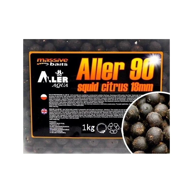 Kulki proteinowe Aller 90 Natural 1 kg powstały przy współpracy z producentem pelletów AllerAqua. Zawierają aż 90% pelletu Aller Best. Doskonałe na łowiskach, gdzie stosuje się pellet do skarmiania, bądź zanęcania karpi. Wieloletnie doświadczenie producentów pozwoliło na stworzenie przynęty na bazie pelletu, która będzie wyjątkowo skuteczna i stabilna w środowisku wodnym. Ta przynęta ma w sobie wszystko co jest potrzebne w skarmianiu i zanęcaniu wszystkich ryb słodkowodnych, zwłaszcza karpi. Produkt obficie bogaty w białka, aminokwasy i witaminy. Wszystko doskonale zbilansowane i bardzo dobrze strawne, dzięki czemu ryby się nie „zapychają" i są dłużej aktywne w swoim żerowaniu.