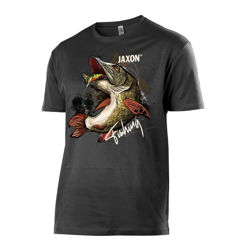 Koszulka Nature Szczupak Czarna to bawełniany T-shirt Jaxon Nature z motywem ryby. Grafika na przodzie prezentuje realistyczną postać szczupaka. Oferta Jaxon dedykowana dla miłośników połowu drapieżników. Nowoczesna technologia druku gwarantuje odpowiednią trwałość. Najwyższej jakości materiały i wzornictwo zapewniają komfort w codziennym użytkowaniu.