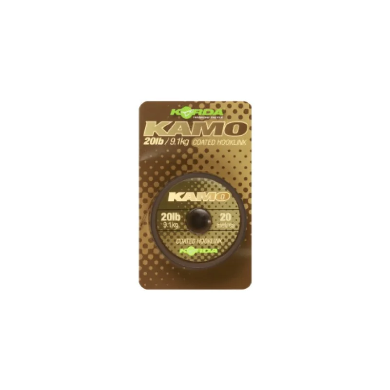 Plecionka Kamo Coated Hooklink to super mocna, zakamuflowana plecionka powlekana, która jest niezwykle łatwa do usunięcia. Zdzieralna powłoka oferuje wiele opcji prezentacji, od prostych przyponów typu combi, aż po bardziej złożone przypony, takie jak multi-rig. Sprytny wzór kamuflażu w paski pomaga Twoim zestawom wtopić się w dno jeziora, niezależnie od tego, na czym łowisz. Kamo jest dostępne w odmianach 15lb, 20lb i 30lb, ale dostępne są również cięższe opcje dla tych, którzy łowią w najbardziej zaciętych miejscach w Europie, takich jak niesławne Rainbow Lake. Obejmują one 50 funtów, 65 funtów i 80 funtów.
