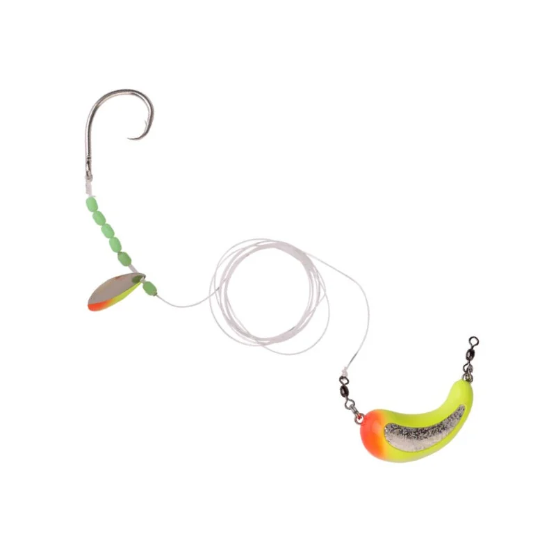 Zestaw Nordic Bait Fish Circle Hook doskonały na halibuta i inne duże drapieżniki morskie. Nieplączący się, specjalnie ukształtowany ciężarek zabarwiony blaskiem i sprayem UV pomaga wabić ciekawskie ryby. Ma również błystkę i zajawkę świecących koralików przed bardzo ostrym okrągłym haczykiem. Przypon o długości 270 cm wykonany ze 100 % fluorocarbonu o średnicy 1,0 mm zapewnia idealną prezentację zestawu.